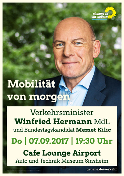 Sinsheim.(rog) "Dass sich die Mobilität zur Zeit so rasant verändert, sollten wir als Chance für einen Verkehr ohne Umweltbelastung und Stau begreifen", das war die Leitlinie des Vortrags vonLandesverkehrsminister Winfried Hermann bei einer Veranstaltung in Sinsheim. Der grüne Bundestagskandidat Memet Kilic begrüßte den prominenten Verkehrsexperten im "Cafe Lounge Airport" des Auto und Technik Museums in Sinsheim zum Thema „Mobilität der Zukunft“.