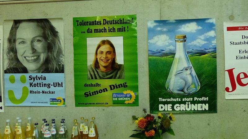 Bammental. Bei der Feier „35 Jahre Kreisverband Odenwald-Kraichgau“ präsentieren die Ortsverbände sich und ihre Geschichte mit Aufnahmen und Zeitungsartikeln. Die Wände in der Mensa der Elsenztalschule in Bammental sind voll mit Grünen-Plakaten, die das bunte Spektrum und den Geist der Anfangsjahre spiegeln.