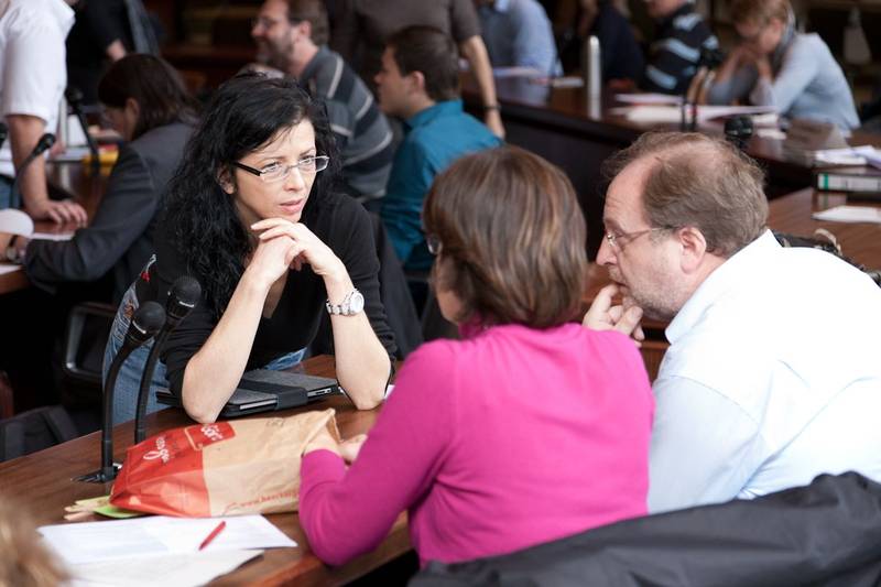 Gewaltigen Handlungsbedarf erkannte die Landtagskandidatin des Wahlkreises Sinsheim Charlotte Schneidewind-Hartnagel in der Gleichstellung der Geschlechter, neben besseren Daten sei eine regionale Beauftragte für diese Fragen unabdingbar. Der Landtagsabgeordnete Uli Sckerl monierte mangelnde Demokratie in der Verbandsversammlung und sprach von einer Politikform wie im Mittelalter. Er machte sich dafür stark, den Staatsvertrag zum 31. Dezember 2011 zu kündigen und die Direktwahl der Verbandsversammlung einzuführen. „Es muss aufhören“, so pflichtete ihm die rheinland-pfälzische Landtagskandidatin Anne Spiegel, „dass die Entscheidungen in den Hinterzimmern getroffen werden“. Noch geprägt von seinen Erlebnissen rund um den Castor-Transport Anfang November war „Sonnenflüsterer“ Erhard Renz. Der Vorkämpfer für Solarenergie in der Metropolregion sah durch die Verlängerung der Atomlaufzeiten nicht nur die konkrete Gefahr für die Menschen im Umfeld von Biblis, Neckarwestheim und Philippsburg, sondern auch eine Gefährdung für ganze Branchen der alternativen Energie. „Wir stehen an ihrer Seite“, so Ruth Ratter, Mitglied des Bezirkstages und rheinland-pfälzische Landtagskandidatin.