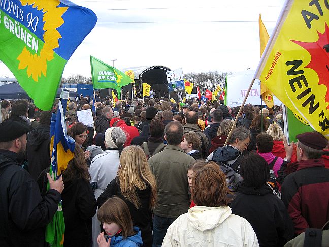 Der Widerstand in der Bevölkerung gegen die Atomkraft erlebte eine generationenübergreifende Renaissance. „Dafür gehe ich seit Jahren zum ersten Mal wieder auf die Straße“, diesen Satz bekamen die Organisatoren von vielen Mitreisenden zu hören. Die Absicht der schwarz-gelben Regierungen in Bund und Land, die Laufzeiten über die im Atomkonsens festgelegten Abschalttermine zu verlängern, empörte Jung und Alt gleichermaßen. „Laufzeitverlängerungen für Atomkraftwerke blockieren die Energiewende. Statt die erneuerbaren Energien zu fördern, sorgen sie vor allem für zusätzliche Milliardengewinne der vier großen Stromkonzerne in Deutschland“, so Ingrid Behner vom grünen Kreisvorstand.