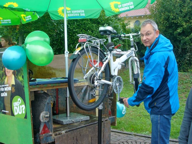Unter dem Motto „Platt? Grün hilft!“ war der Ortsverband Malsch von BÜNDNIS 90/DIE GRÜNEN am Samstag mit einer mobilen Reparatur-Station für Fahrräder in seiner Heimatgemeinde unterwegs. Es wurden platte Reifen aufgepumpt, Schaltungen eingestellt oder Beleuchtungsanlagen repariert. Dabei nahmen sich die Ortsverbandsmitglieder mit großer Begeisterung und professionellem Handwerkszeug der Mängel an, so dass alle Räder zur Zufriedenheit ihrer Besitzer repariert werden konnten.