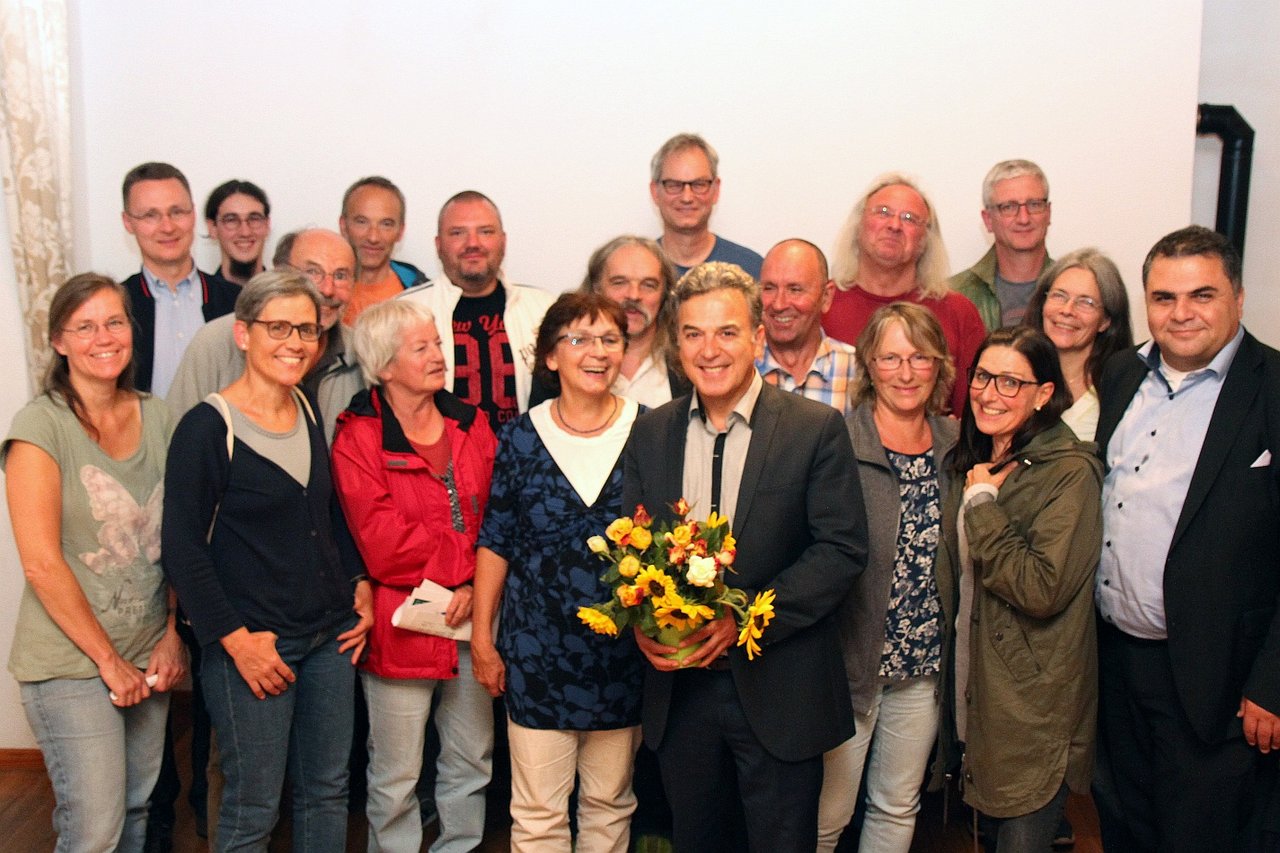 Memet Kilic, Anwalt für Europa- und Ausländerrecht und Vorsitzender des Bundeszuwanderungs- und Integrationsrats (BZI), saß schon von 2009 bis 2013 für die Grünen im Bundestag. Der 49-Jährige erzählte, dass er in der Türkei aufgewachsen ist und erst 1990 nach seinem Examen nach Deutschland kam. Es war die Zeit der Jugoslawienkriege und schon damals habe es nationalistische Töne und Lichterketten gegen brennende Flüchtlingsheime gegeben. Gegenüber dem Getöse der AfD wolle er die demokratische Mitte hörbarer machen und zugleich den Sozialstaat stärken, „der dafür sorgt, dass sich das Vermögen nicht auf immer weniger Menschen konzentriert“. Neben der Energie- will er auch die Verkehrswende voranbringen, die er bei der CDU und Verkehrsminister Dobrindt nicht gut aufgehoben sieht. Er spricht sich gegen TTIP und CETA und für ein solidarisches Europa aus, findet Debatten über „Leitkultur“ und „mehr Imame“ überflüssig und will stattdessen Ethik, Philosophie und Kunst fördern. Die Mitglieder fordert er auf, im Wahlkampf gemeinsam Flagge zu zeigen gegen Islamismus und Rassismus.