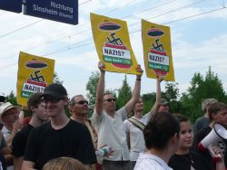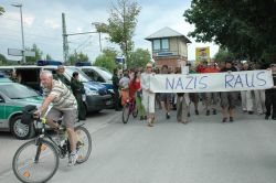 Gleichzeitig waren auf der Gegenkundgebung im Ort ca. 200 Leute, von denen ein Großteil anschließend zum Bahnhof zog.
