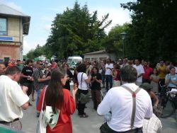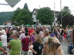 Nach langen Verhandlungen wurde Ihnen lediglich zugestanden, wenige Minuten auf "Ihrer" Seite der Bahnlinie die Straße Richtung Schatthausen zu laufen, einen Linksschwenk zu machen, um dort zu landen wo sie gestartet waren: Im Bauhof direkt an den Bahngleisen, wo sie von der Polizei bis zum Einsteigen in den Zug "bewacht" wurden.