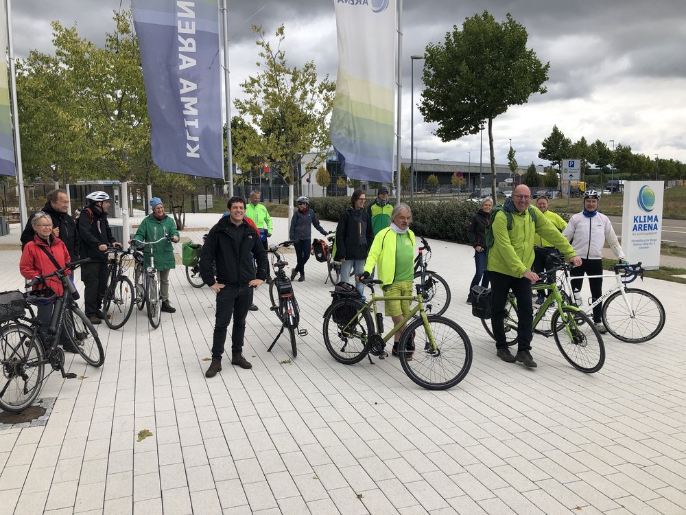 Aus allen Himmelsrichtungen erreichten kleinere oder größere Gruppen von Grünen aus der näheren oder weiteren Umgebung die Klimarena Sinsheim. Manche hatten bei dem sicher nicht 100% radtauglichen Wetter mit ca. 12 Grad, Nieselregen und Wind mehr als 90 min Fahrzeit auf sich genommen. Das ist wahrer Einsatz!