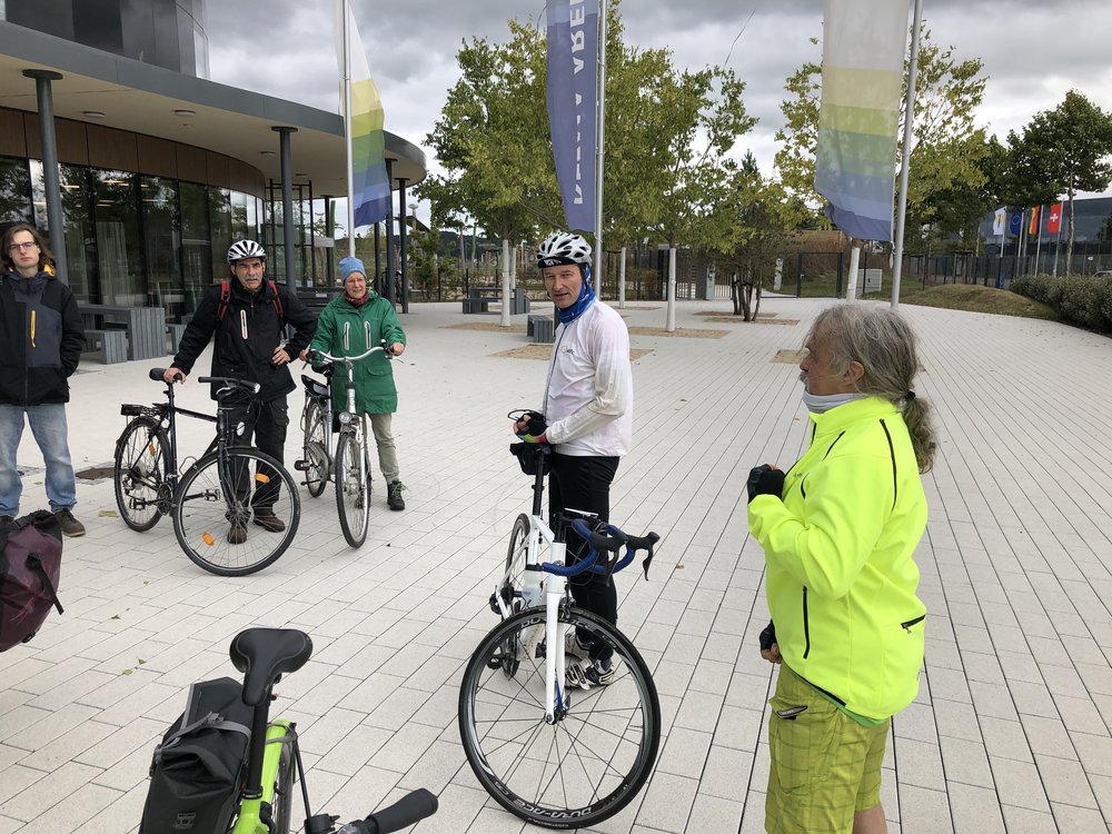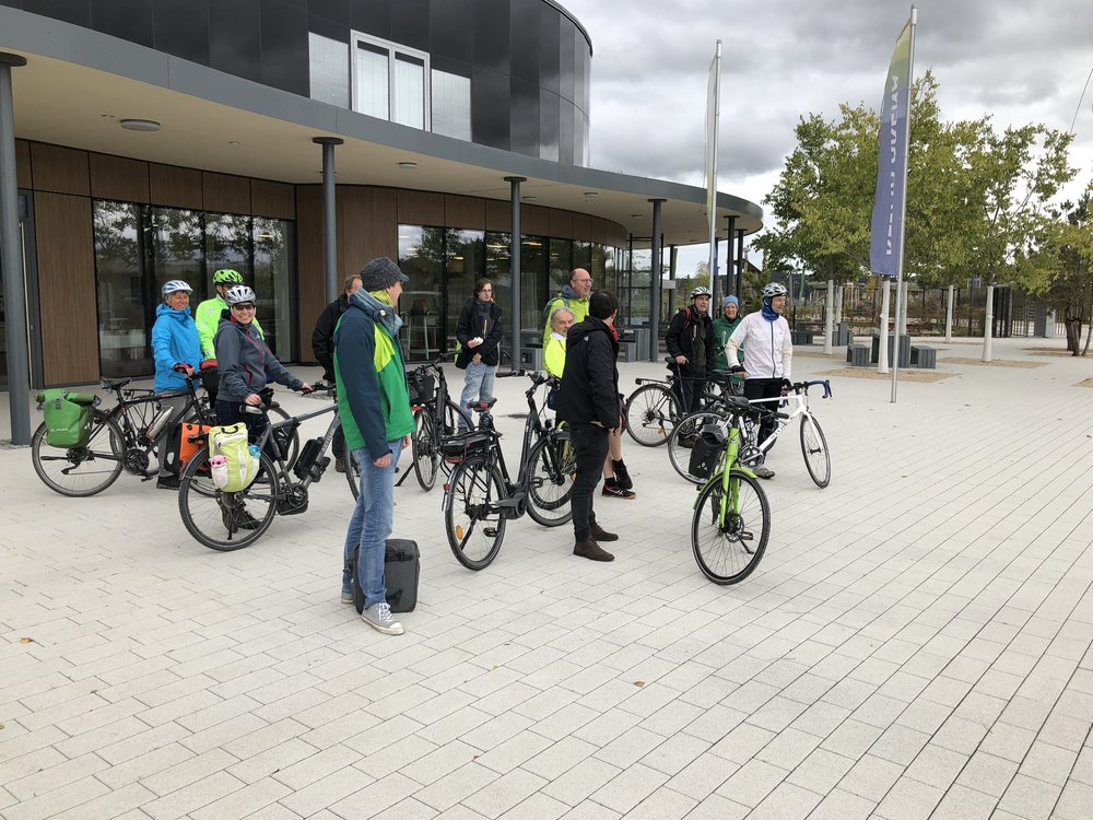 Mit diesen Worten ging es dann an die Abholung der 2. "Belohnung": das hochwertige Angebot des veganen Restaurants wurde von den Radler*innen genauso gerne angenommen wie die vielfältigen Informationen in der Klimaarena. Ganz wichtig war auch der Austausch zwischen den Mitgliedern und Interessierten untereinander und mit den Landtagskandidaten sowie dem Bundestagskandidaten Jürgen Kretz.