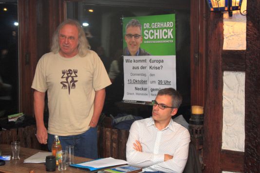 Mit dieser Frage befasste sich Dr. Gerhard Schick, finanzpolitischer Sprecher der Grünen Bundestagsfraktion in der voll besetzten Griechischen Weinstube in Neckargemünd. Ohne Schnörkel analysierte Schick den instabilen Bankensektor und die drohende Gefahr für den europäischen Finanzraum. Bereits bei der Bankenkrise 2008 seien gravierende Fehler gemacht worden, als Finanzminister Steinbrück noch an eine Deutsche Lösung glaubte und eine Rettung zuließ, bei der die Verluste durch die Steuerzahler zu tragen waren, die Gewinne später dann allerdings wieder privatisiert wurden.